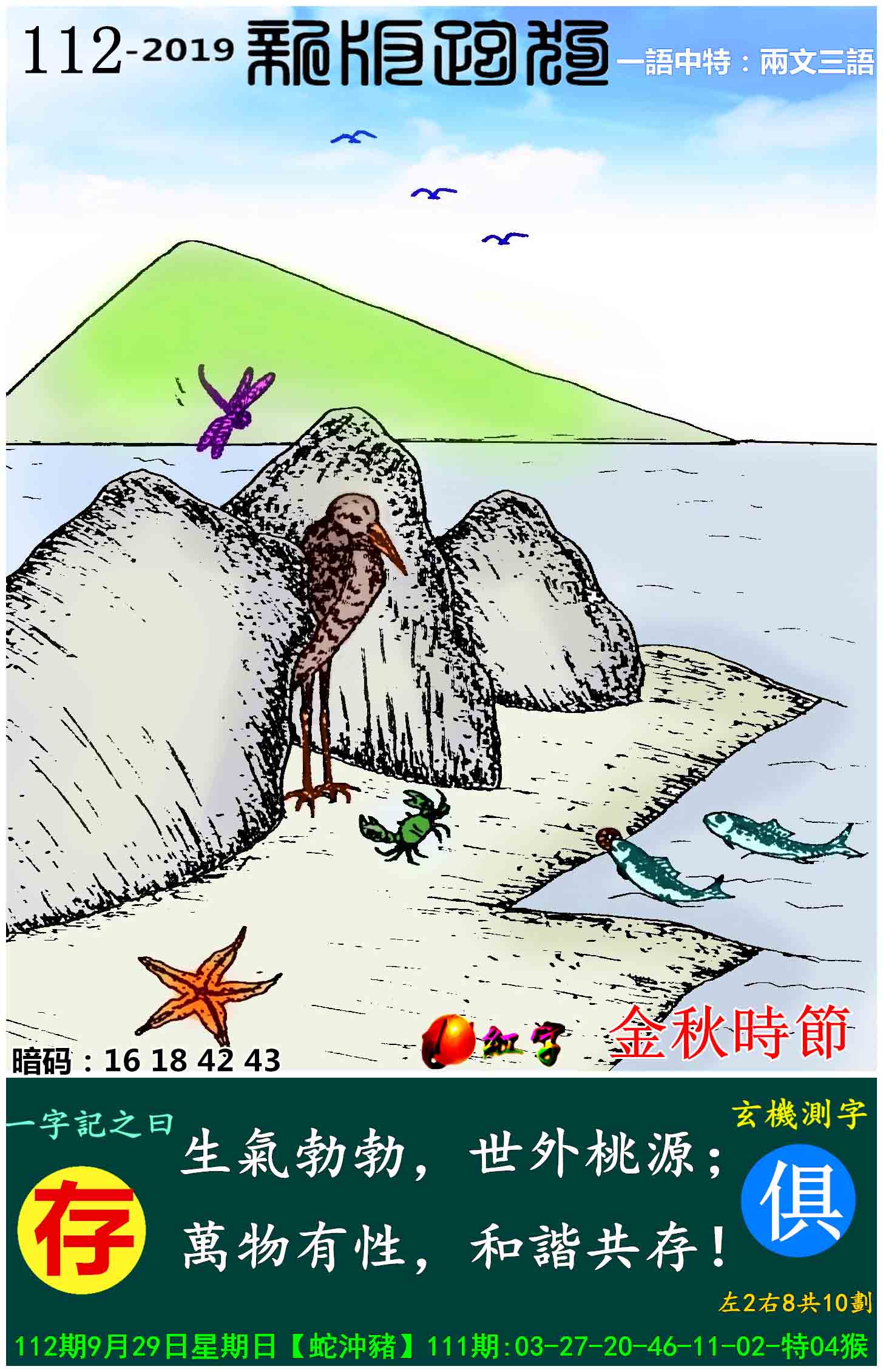 主题 : 112期:新版跑狗一字記之曰【存】玄機測字:《俱》