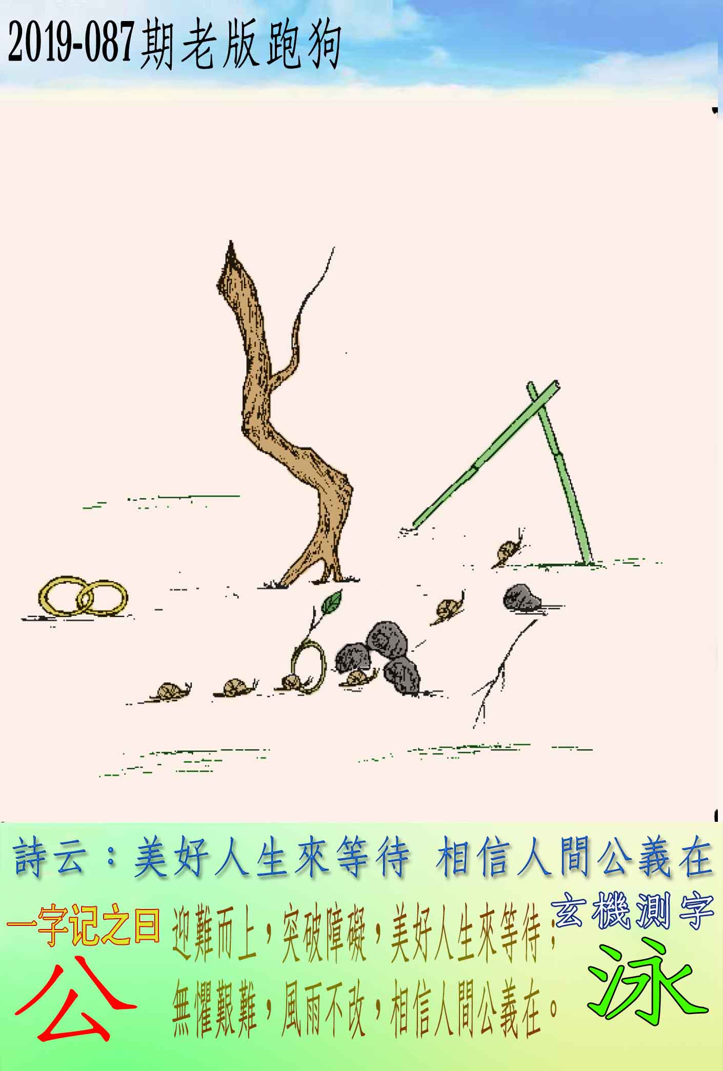 087期老版跑狗一字記之曰:【公】 詩雲:美好人生來等待,相信人間公義在。