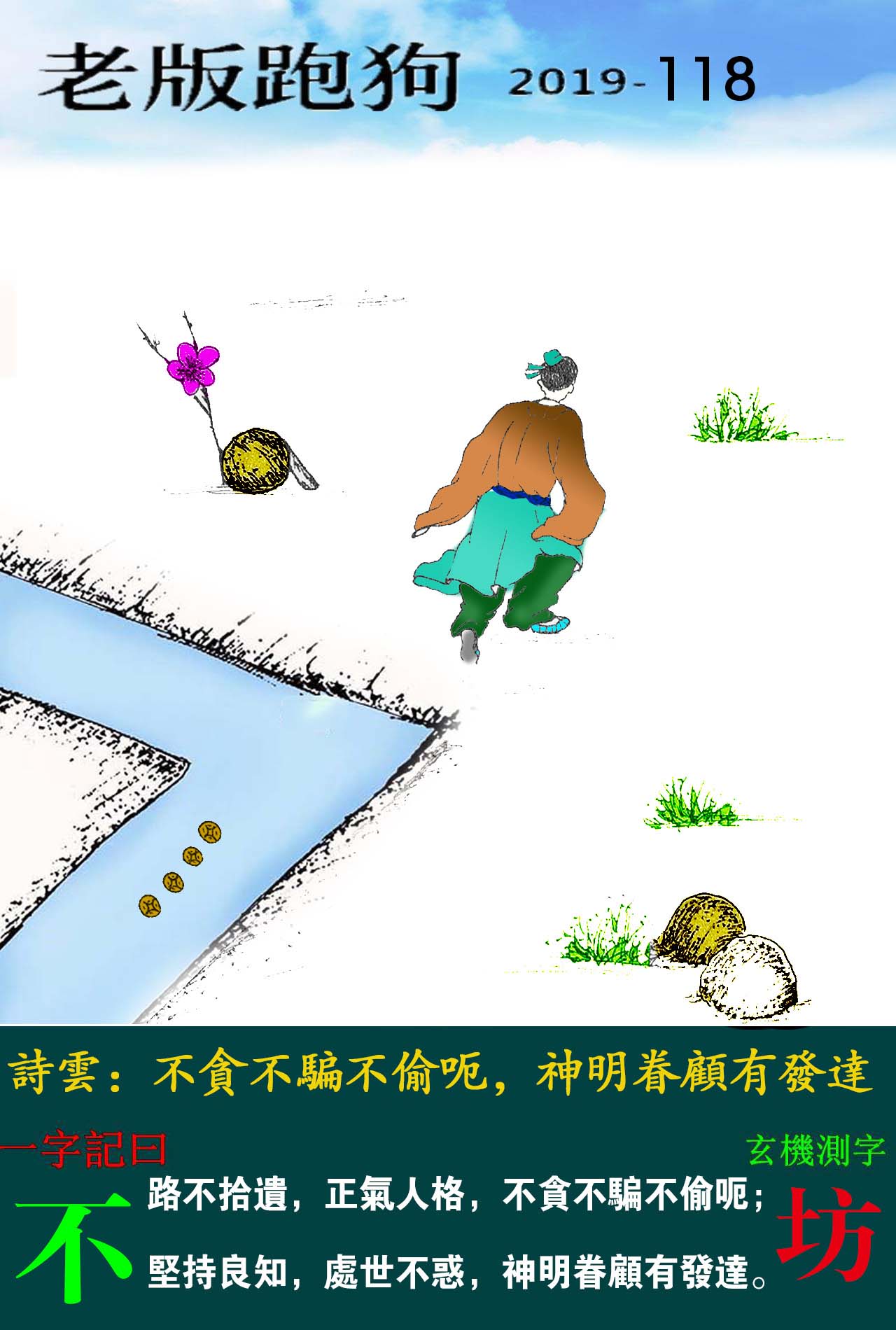 路不拾遺,正氣人格,不貪不騙不偷呃;