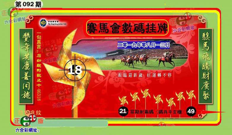 092期开奖时间2019年08月13日(星期二)晚9:30开(农历七月十三 马冲鼠)